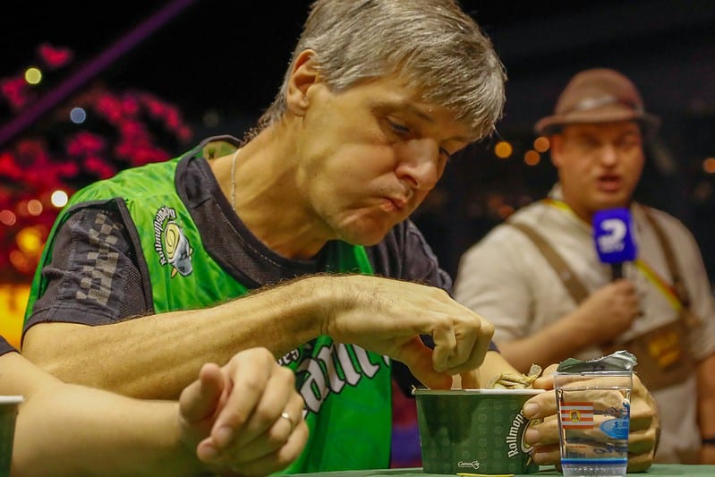 São duas categorias disputadas: a masculina e a feminina. O ganhador da categoria masculina, Emerson Martins conseguiu comer todas as unidades de rollmops. Ele cumpriu a prova em pouco menos de dois minutos e foi o primeiro da 40° da Oktoberfest Blumenau a conseguir o feito. “O segredo é não prestar muita atenção, comecei pelos menores e foi. Só mastigar e vai embora, mas ‘embucha’ bastante”, comenta o blumenauense.
