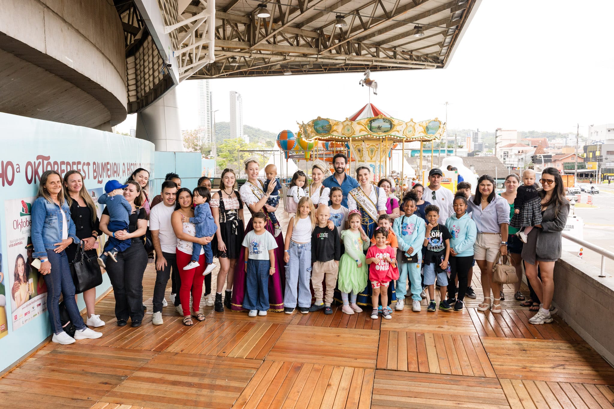 Mais de 30 crianças atendidas pelo serviço de oncologia pediátrica do Hospital Santo Antônio, acompanhadas de familiares, tiveram uma manhã especial nesta terça-feira, dia 21, na Oktoberfest Blumenau. O grupo aproveitou momentos de alegria no parque de diversões anexo ao Ginásio Galegão, em um espaço preparado com cuidado e segurança.