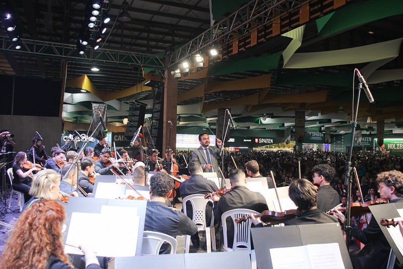 O espetáculo reuniu grande público no Setor 2, mostrando que quando o assunto é cultura, todas as formas de expressão se complementam. “Do clássico ao popular, as artes se misturam. É a primeira vez que nos apresentamos na Oktoberfest e encontramos uma plateia calorosa”, expressou o maestro Lucas Araújo, regente a orquestra.