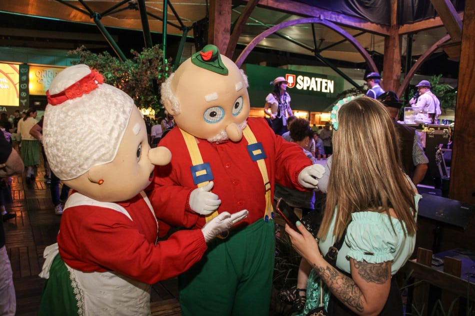 Durante um passeio pela festa, os mascotes atraíram olhares e filas para fotos. “Viemos de Curitiba e é a primeira vez que visitamos a Oktoberfest. Abordamos o casal símbolo da festa pela alegria e pela simpatia deles”, contam os turistas Aline e Ronaldo Costa.